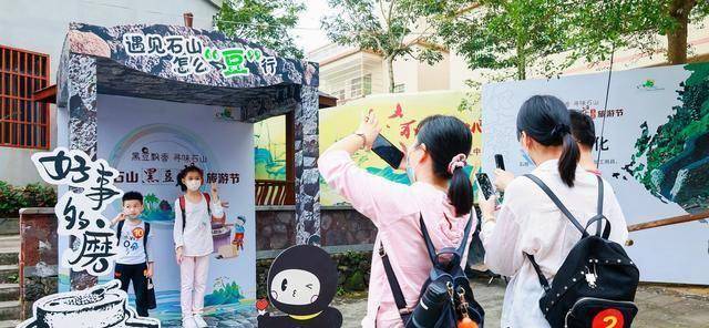 在首届黑豆腐文化旅游节开幕时,吉祥物“火山豆”首次亮相,外表活泼可爱的“火山豆”展示着积极乐观、健康向上、自信坚韧的火山精神。当日,还通过线上农企签约,搭建供销协作桥梁,促进火山黑豆产销对接、产业协同。同时,“官良豆腐村科普研学基地”也正式揭牌,自此市民“乡村游+学”的新路线开通。为了将石山黑豆与丰富的秀英其他特色农产品从田间枝头飞往全国各地,活动当天,多位本土网红大咖入驻石山镇,通过直播带货的形式,给“自然与有机”的农产品插上了“云”的翅膀,拓宽农产品销售渠道,带动农民增收致富。