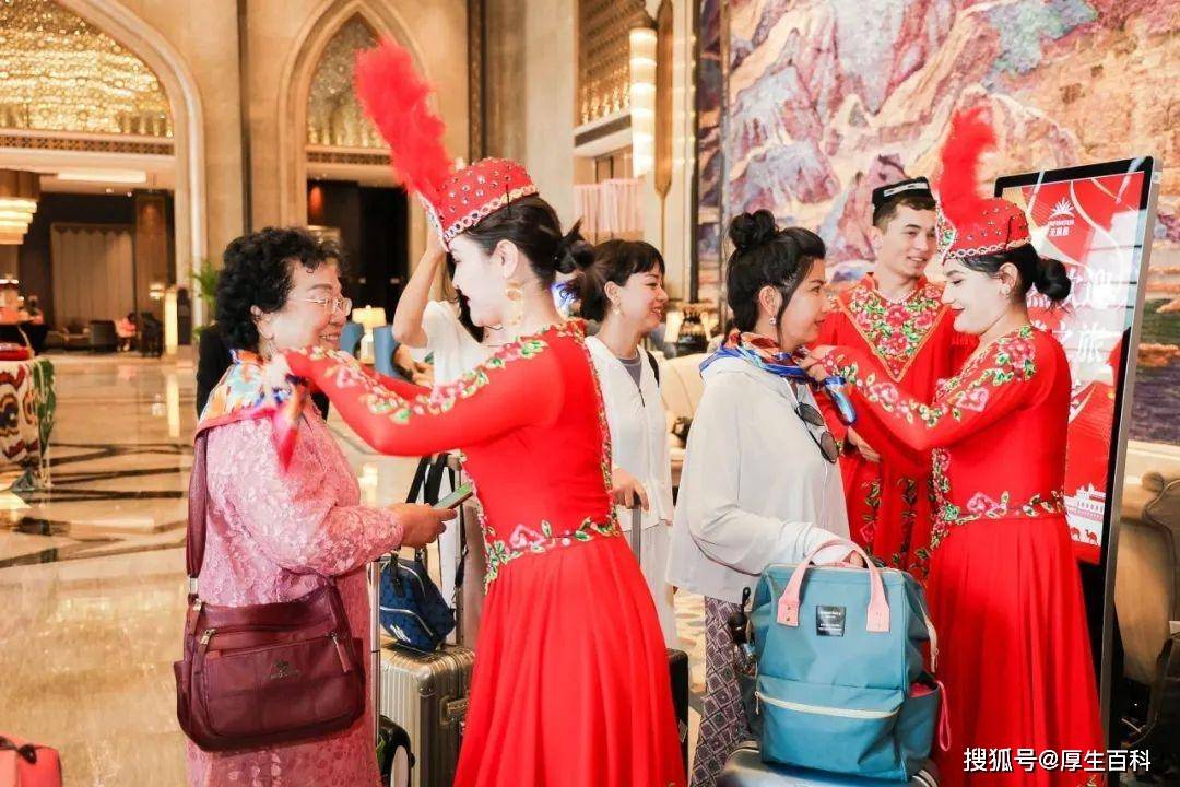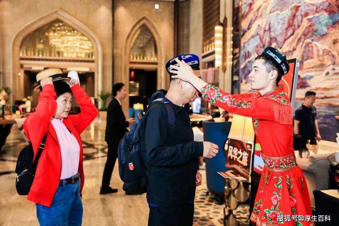 穿着民族服饰的新疆朋友以曼妙的舞姿在酒店迎接来自无限极的贵客,并为大家戴上民族毡帽,系上彩色专属丝巾。