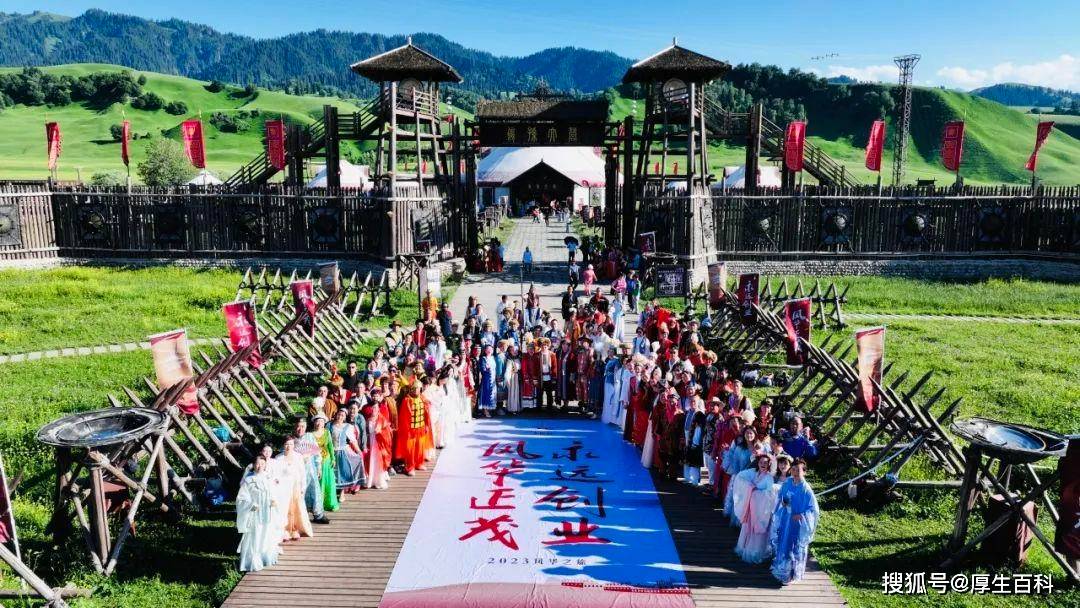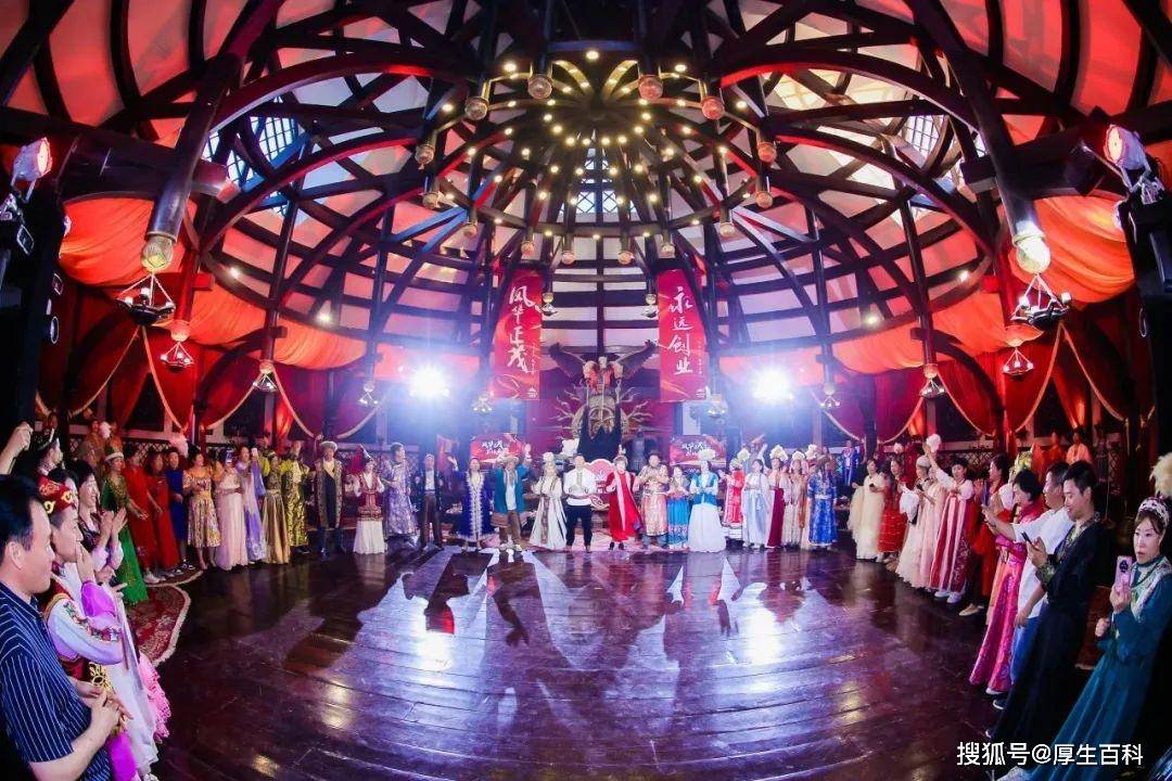 草原上赛马回厩,诸王华服入宴,“乌孙王”用最高礼仪迎接风华之旅的贵宾,创业合伙人也身着华美的传统服饰锦衣出席,沉浸式体验了一番“乌孙古国”及哈萨克族的民俗文化。