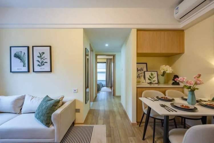 城家公寓整体采用原木风设计,分区合理,空调、洗衣机、冰箱、灯、家具等设施均已全部到位,完全实现了拎包即可入住。作为虹桥国际中央商务区重点打造的人才公寓,共有33-75平方米4种不同户型。
