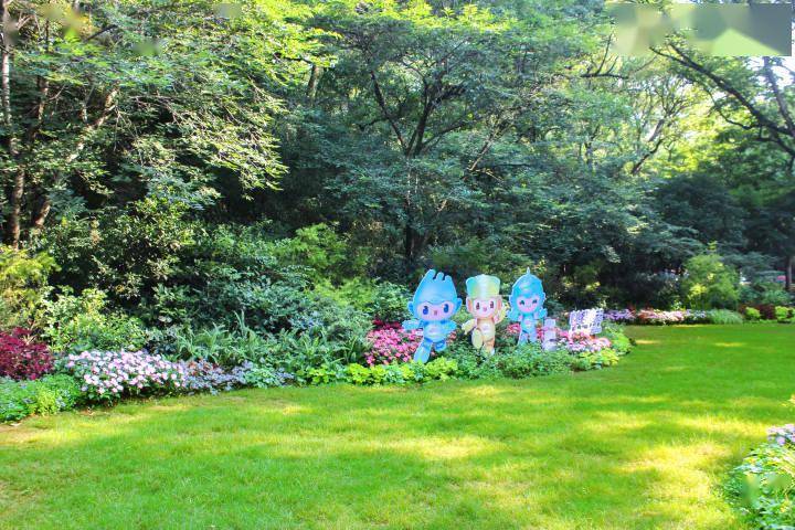 位于灵隐路云松书舍石碑前,以暖色调为主,搭配超级凤仙、八仙花、多花筋骨草等宿根花卉,并辅以活泼可爱的福娃形象,营造充满活力的亚运氛围。