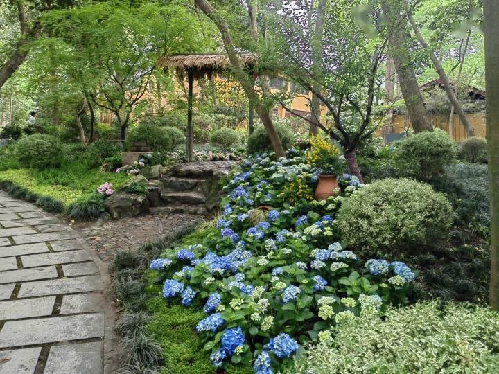 以飞来峰景区芗林洞为背景,通过栽种茶树、搭设茶亭,为游客提供可观可游可赏的体验。配置八仙花、大叶吴风草、翠云草等植物,突出鲜明的季相特色,营造四季皆景的效果,展示杭州韵味,添彩亚运。
