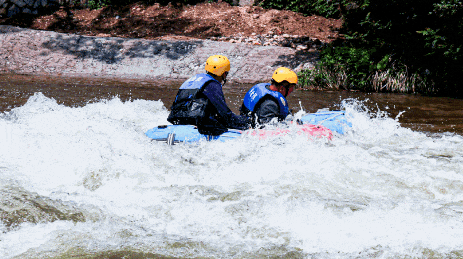 竹筏漂流长1.5公里,全程耗时1小时左右。整段水道水流平缓,老少咸宜,古朴竹筏荡入山光水色之中,如融入神话般的境界,令人心旷神怡。河水清澈见底、流速缓慢,有一种“鸟在水里飞,人在画中游”的感觉;皮筏漂流全长约3.5公里、耗时1.5小时,河道错落起伏、顺势而下,沿途时宽时窄水流时急时缓,一路乘风破浪,给你带来惊险刺激的漂流体验。