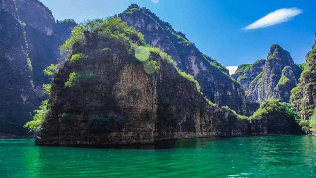 素有京郊“小漓江”之称的龙庆峡风景区,夏天正是游船赏景的好时节。碧绿清澈的河流两边是悬崖峭壁,崖石上生长着苍翠繁茂的绿植,随着游船行进,迎面吹来一股清凉的微风,峡谷的凉爽和高温的天气形成强烈反差,让人顿感浑身清爽。