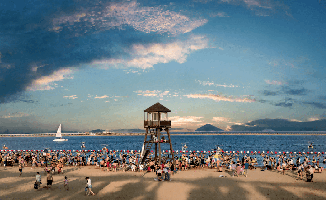 金山城市沙滩是长三角最具海派风格的城市海岸景观之一。景区现分为东区和西区,沙滩总面积16万平方米,游泳区面积2.6万平方米。可以体验游泳、玩沙、摩托艇、水上自行车、帆船等游玩项目,还可以玩沙滩排球、沙地乒乓球、沙地飞盘、沙滩足球等沙滩娱乐运动。