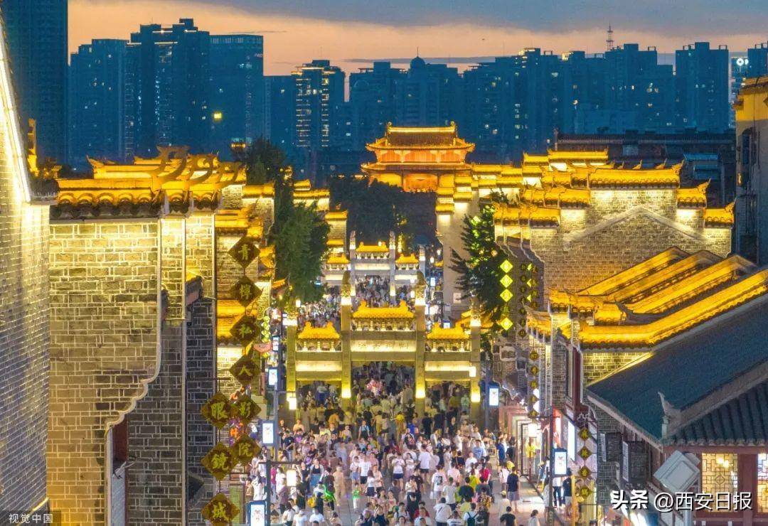 7月5日,湖北省襄阳市,襄阳古城流光溢彩,游人如织。图片来源:视觉中国
