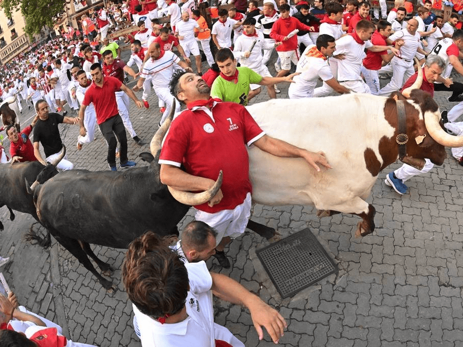 潘普洛纳的奔牛节,当地人称之为圣费尔明节。