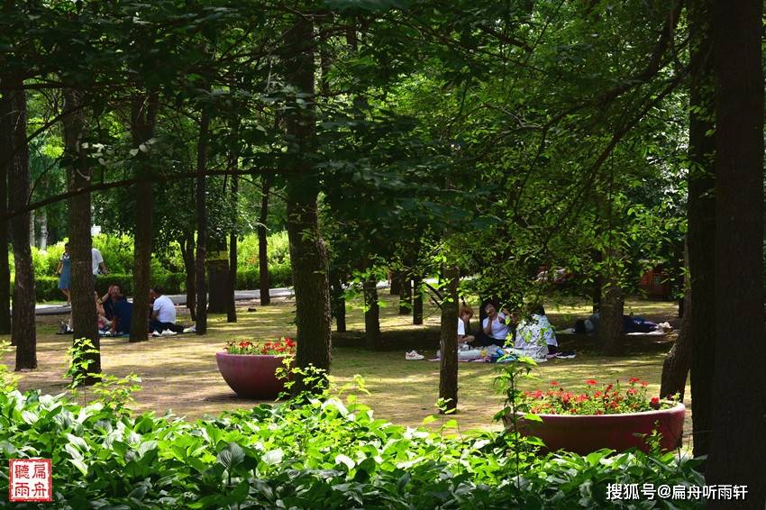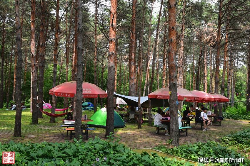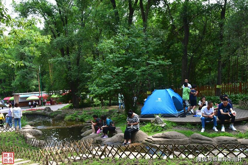 此时,地处哈尔滨市中心的黑龙江森林植物园反而显得非常安详静谧,树荫下、溪水边,随处可见市民们支起的帐篷,人们在帐篷内外三三两两地野餐、打牌、聊天,听音乐,好不惬意。