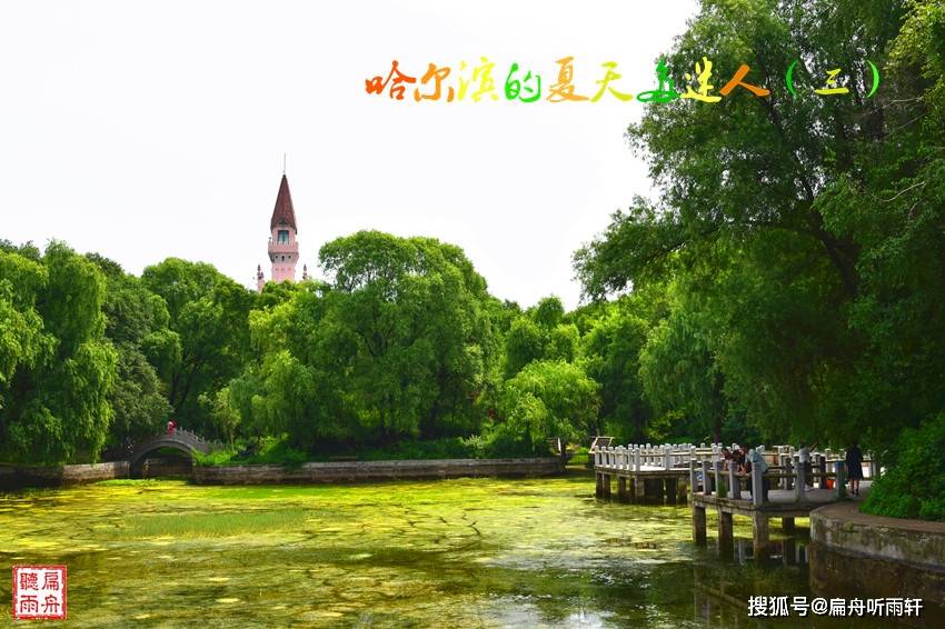 夏日的太阳岛一派喧嚣,游人成群结队,景区内的交通车拉着游人如蛇形穿梭在游人中间,到处是导游的喇叭声和游人的呼唤声,四处都热闹得犹如市井。