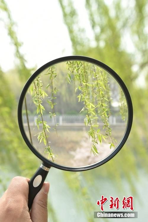 柳树枝条上已冒出翠绿的嫩芽。(合成图片)