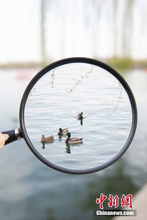 “春江水暖鸭先知”在公园里,成群结队的鸭子在水中嬉戏。(合成图片)