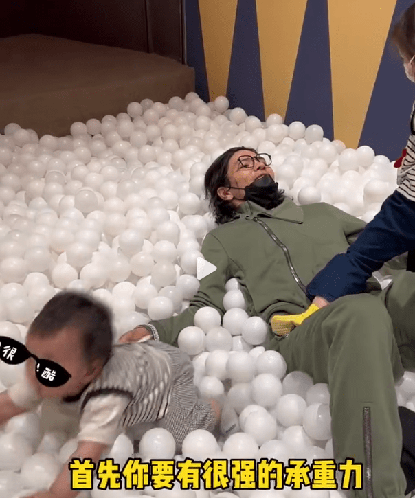 向佐躺在海洋球里配孩子疯玩。