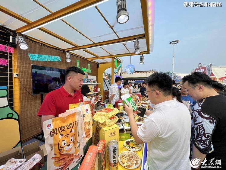 儒风连海岱,更好在潍坊。7月14日,在青岛西海岸金山滩啤酒城内,潍坊美食meet青岛国际啤酒节特色展区热闹非凡。城隍庙肉火烧、隆盛糕点、同文堂毛笔、峡山艾灸等潍坊非遗、文创产品和特色美食“登陆”第33届青岛国际啤酒节,引得众多游客关注打卡。