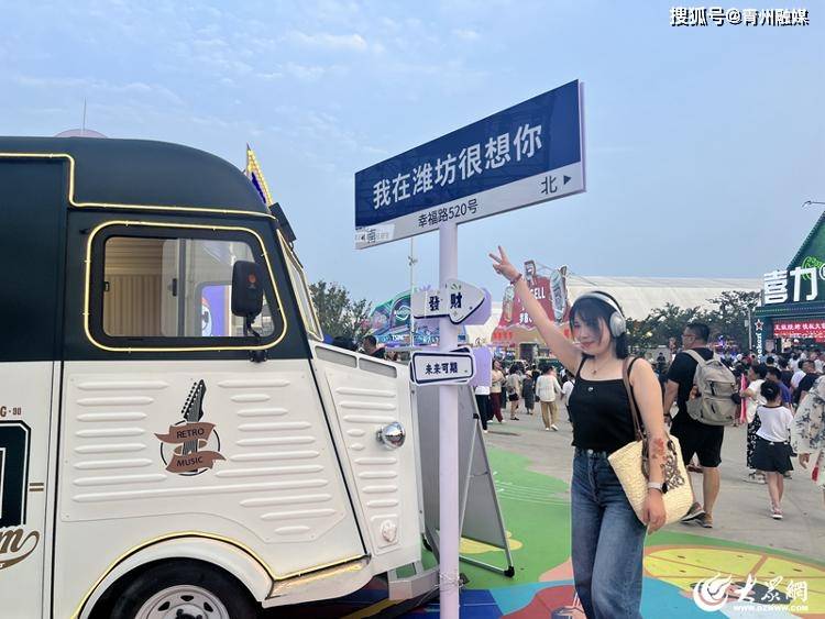 不仅如此,潍坊市文旅局局长权文松、诸城市市长王浩、寿光市市长李鹏分别走进青岛啤酒大棚,亲手派发“文旅大礼包”。“我是潍坊的,大礼包里有西红柿、黄瓜、扇子、板栗、辣条、风筝、姜片、茶叶以及旅游景点的门票。”与游客零距离互动推介潍坊。