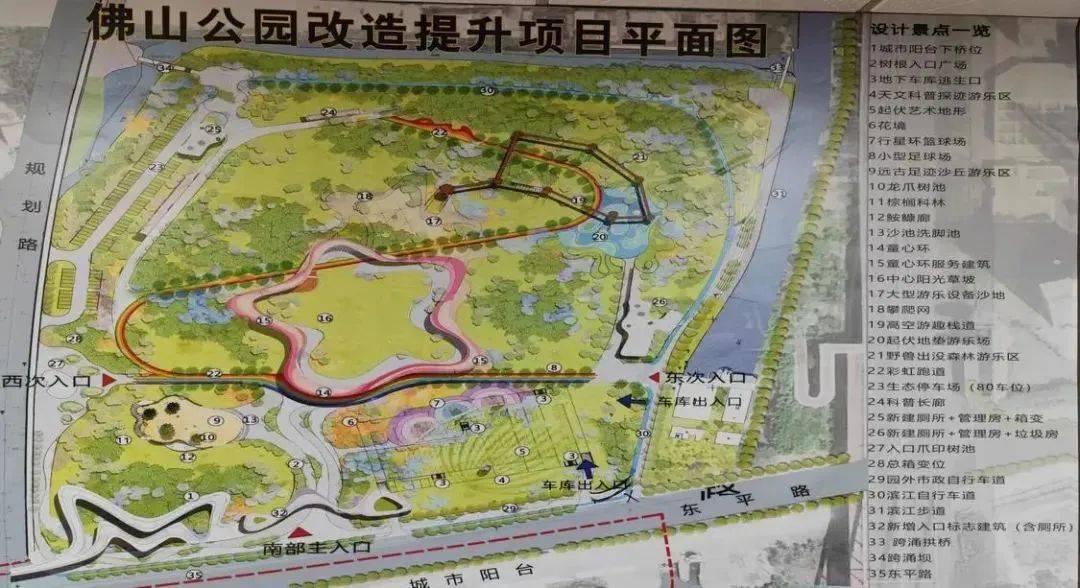从改造提升项目平面图和现场实拍图对比看,公园已经进入收尾阶段。
