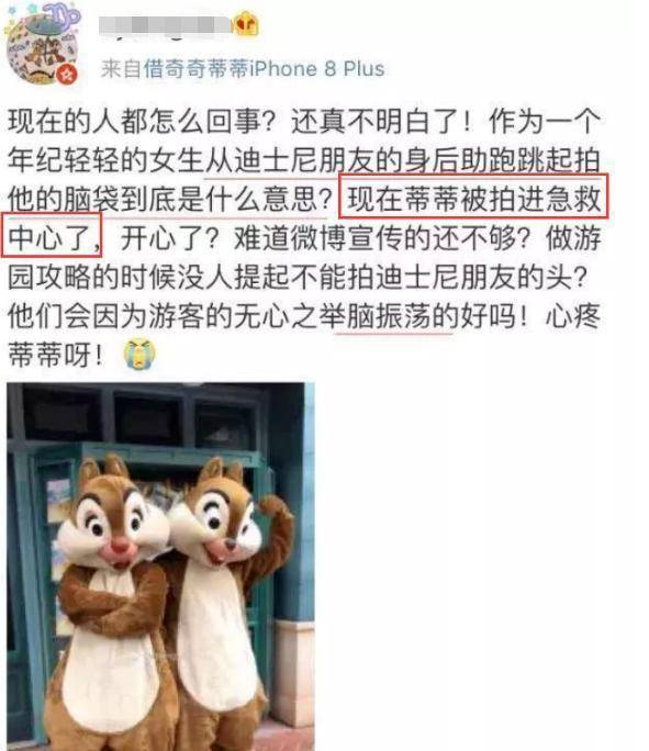 所以迪士尼是明令禁止游客击打人偶头部的,但就是有些傻缺,偏要把拍头当做好玩的事,可能是觉得“没关系”“就算被拍到也可以不承认”