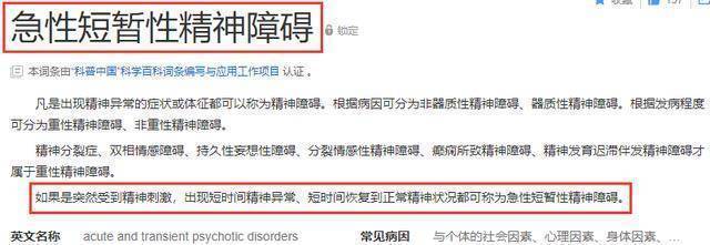 小主也特地去科普了下【急性精神障碍】,简单来说就是看上去挺正常,不晓得啥时候就发作了