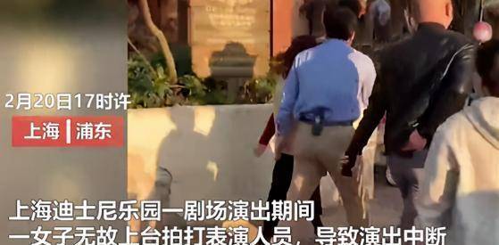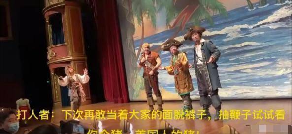 在加勒比海盗的演出剧场内,有一名女子突然冲上台,对台上的演职人员进行了殴打和辱骂,用词极不礼貌。