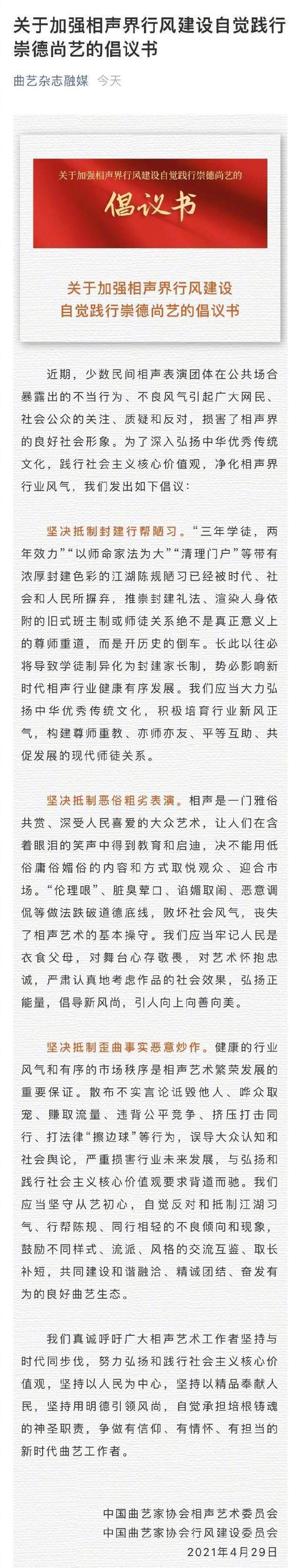 相声界提新倡议书