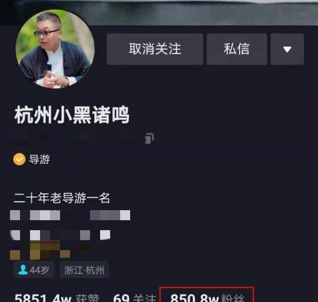 “小黑诸鸣”是一位20年的老导游,其大号在平台拥有850多万名粉丝。