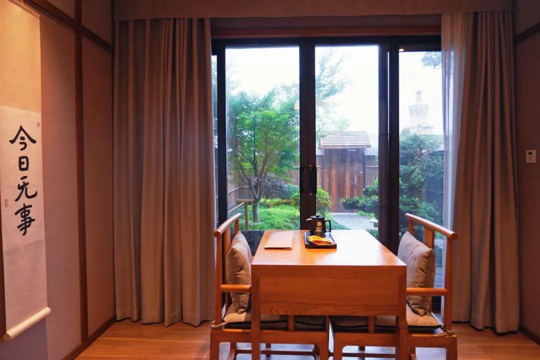 特别喜欢房间内临窗的茶室,很适合悟禅,观水,抄经,品茶,让自己静下来。