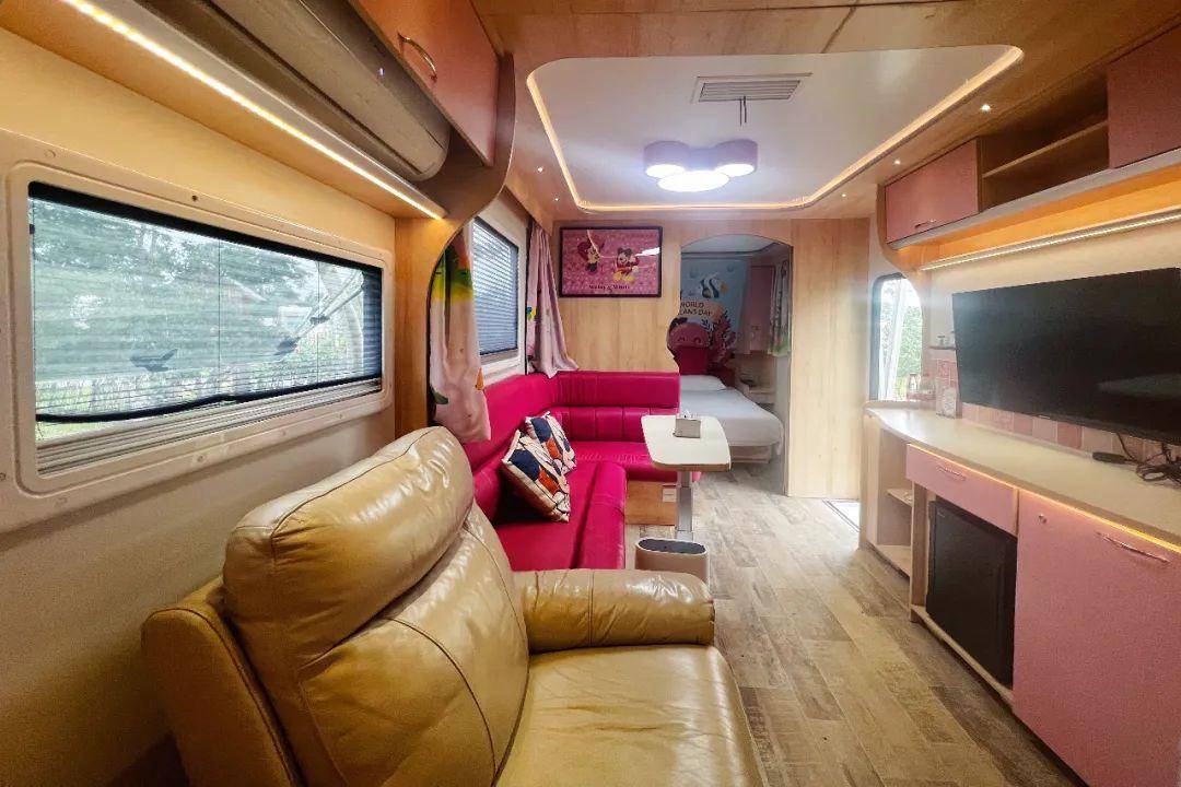 房车内部也很宽敞,各种设施相当完善。靓丽的色彩,好想回到童年时光啊!