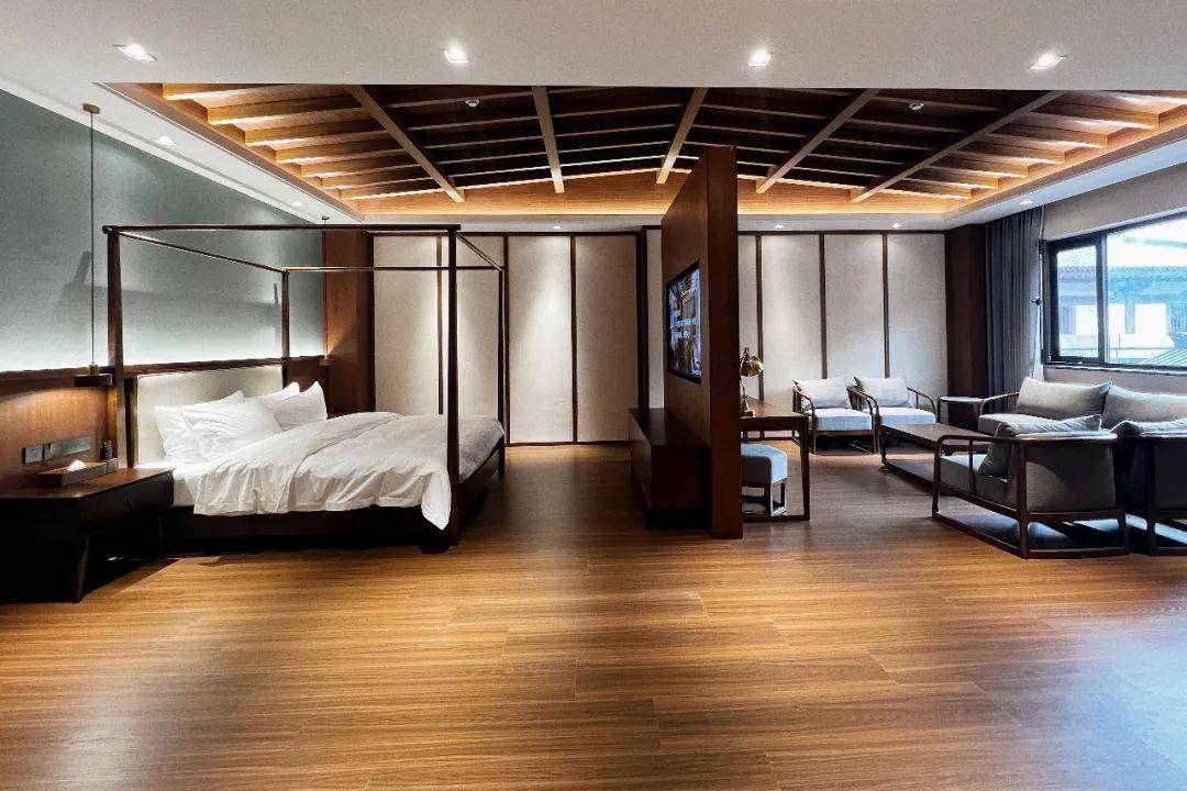 而且各种套房、亲子房、家庭房都有,装修古色古香,沉稳内敛。