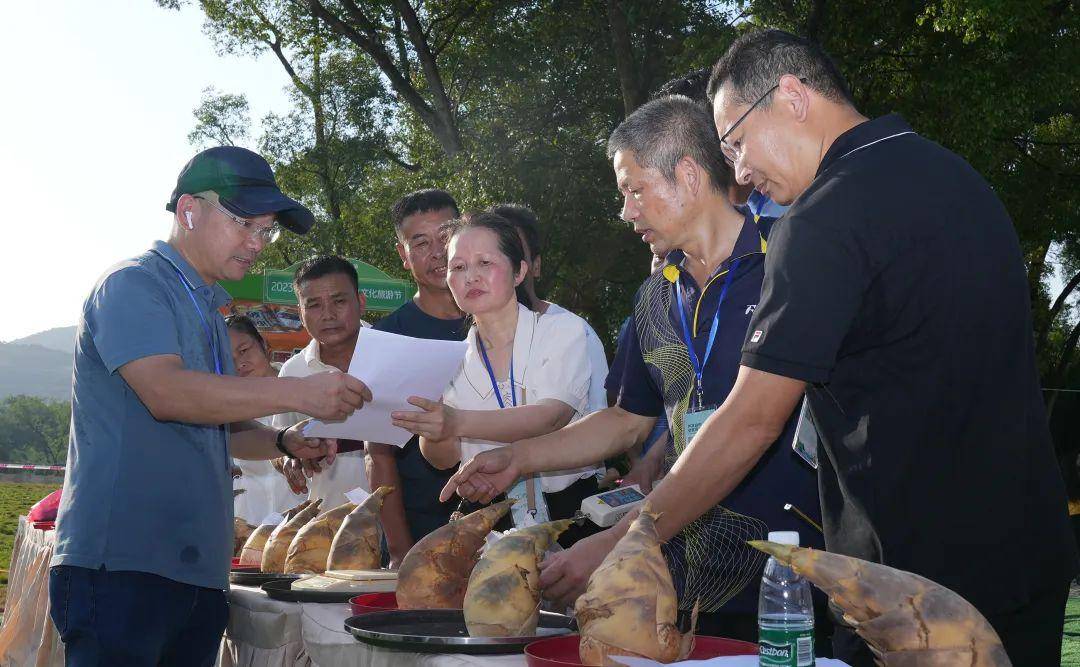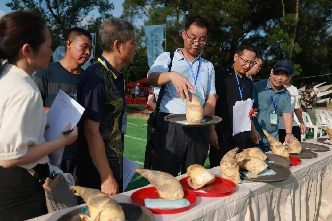 在绿竹笋王评比环节,专家们通过对绿竹笋形状、头部直径、笋重、外观质量等方面进行评选,最后,溪柄镇白沙村竹农王金德采摘的绿竹笋获得“笋王”称号,该笋重1326克,头部直径达12.5厘米,因其外形良好,马蹄状明显,获得在场评委一致好评。“花了很大的力气,终于获奖了,真的非常激动。”笋王王金德表示,明年要把竹笋管理得更好,下一届再争取做笋王。