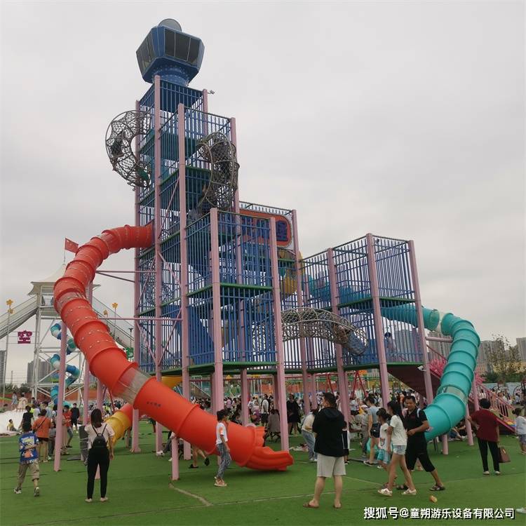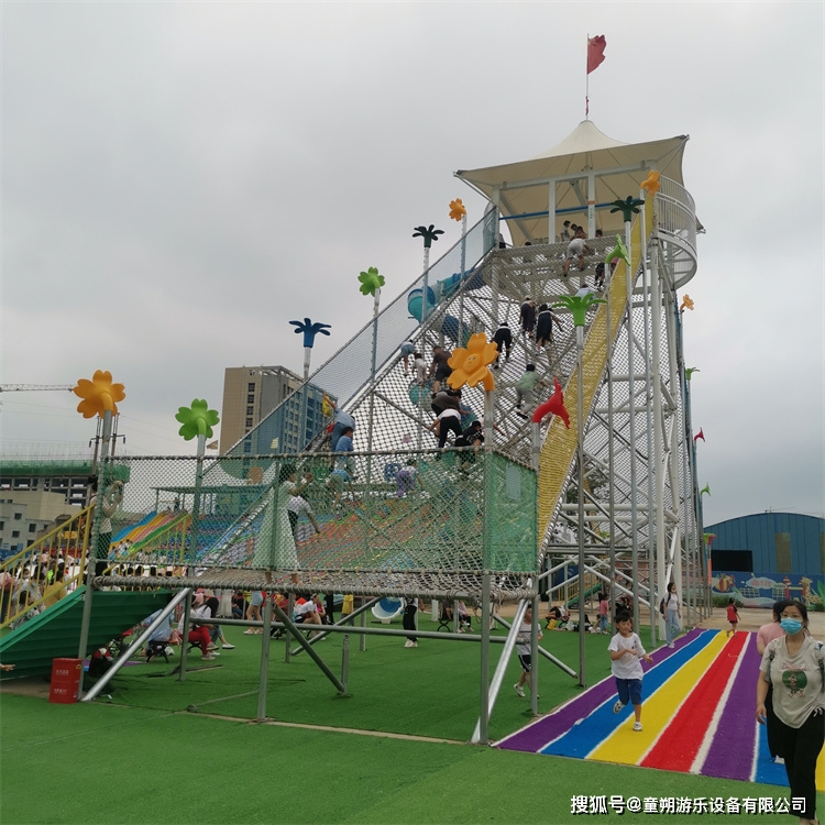 3.天空步道又叫空中爬网,是一款新型的无动力游乐设备。它是由钢架,钢化玻璃,攀爬网和塑料滑梯组合而成。30多米的长度看起来是庞然大物。10米的玻璃栈道也让胆小者戛然止步!游玩者登顶以后还能感受到玻璃栈道的惊险刺激。最后游玩者可以从顶部顺着螺旋滑梯一滑而下。
