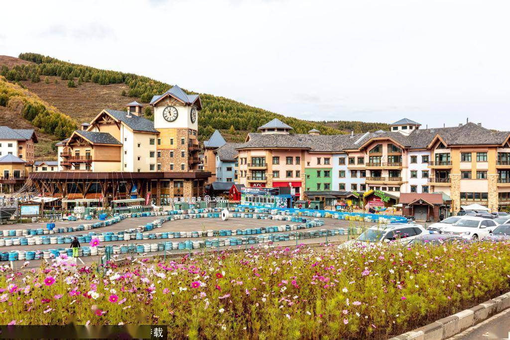 小镇里有一条北美风情街,原版复刻北美小镇商业街全貌。浓浓的北美建筑风格使其成为各地度假游客心中的热门打卡地。还可以乘坐小镇缆车4号吊厢,经停海拔2003米中站,在被誉为“最美山地餐厅”的阿尔卑斯小屋打卡“听山”网红点,或从中站花海里穿行而过,漫山遍野繁花似锦,如梦如幻。