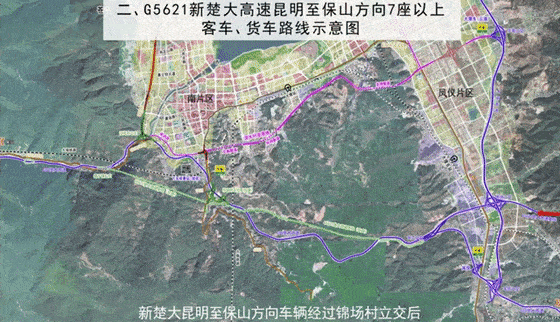 二、G5621新楚大高速昆明至保山方向7座以上客车、货车路线示意图