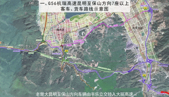 一、G56杭瑞高速昆明至保山方向7座以上客车、货车路线示意图