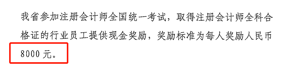 通知文件中的附件明确表明,海南注协为在我省参加注册会计师全国统一考试,取得注册会计师全科合格证的行业员工提供现金奖励,奖励标准为每人奖励人民币8000元。
