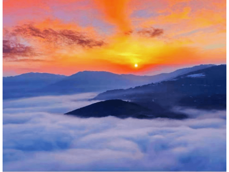 我们一行移步到灵芝仙台和玻璃廊桥,只见周边山峦云雾缭绕,美不胜收,耸立于绝壁高崖的“灵芝仙台”宛若仙葩在40余米高的石崖之上,惊艳绽放。站在峭立崖顶的“灵芝仙台”上,壮丽的峡江风光尽在视角之间。长江第一拐是印在1980版伍圆人民币上的风景。这里“春有漫山罗钱花开”“夏有缥缈云海升腾”“秋有巴山红叶绚丽”“冬有层层银装素裹”,在这里夕阳把巫峡染成满江金色,江面上就仿佛盖上了一层绒绒的棉缎,人们俗称“巫峡流金”!这里群峦叠嶂,峡谷幽深 ,是观巫峡云海,摄峡江落日的最佳观景点,是俯视长江第一拐,鸟瞰巴东新城全景的制高点。真乃“抬头极目千山秀,俯首推开万里江”!