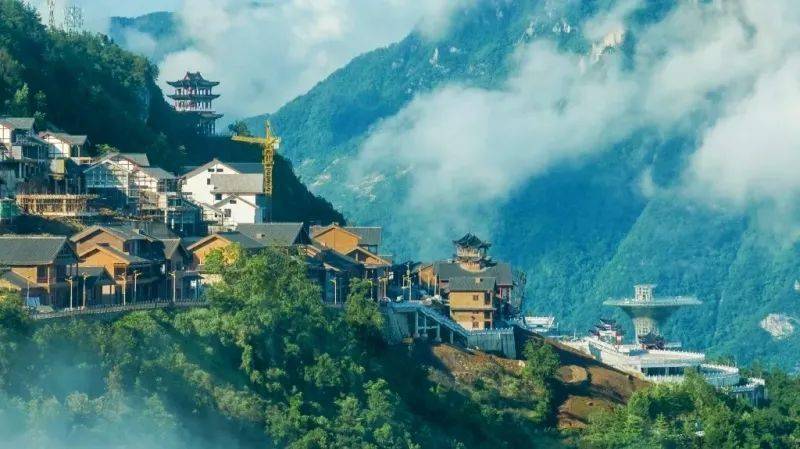 还有这如诗如画的“巫峡天街”,是集酒店、民宿、餐饮、观演、名特产品展示和艺术创作等业态于一体的商业综合体。“巫峡天街”横亘云山之巅,占地十万平方米,是巴东三峡的世外桃源。“天街”建筑风格以土家风格为主,充分结合了地形特点,建筑采用吊脚、砖木结合,依山就势,着力打造出极具土家特色的建筑风格。