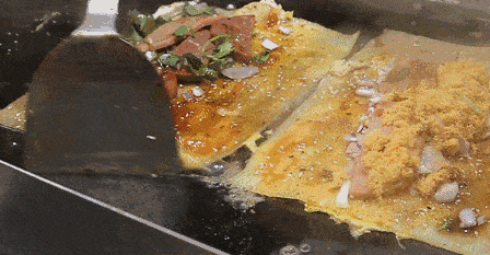 首当其冲,第一个爱吃的当然就是烤冷面了,吃过的人都知道烤冷面做好了真的很好吃。记得当初在学校的时候,学校后面有人卖烤冷面,先把一张面放在上面烤,然后旁边是烤的一些金针菇、洋葱、和香菜。这些东西烤完之后就会在上面撒一层番茄酱调制成的番茄水,然后你喜欢吃辣就加辣椒,喜欢吃甜就加糖。总之出锅以后是不可多得的美味!