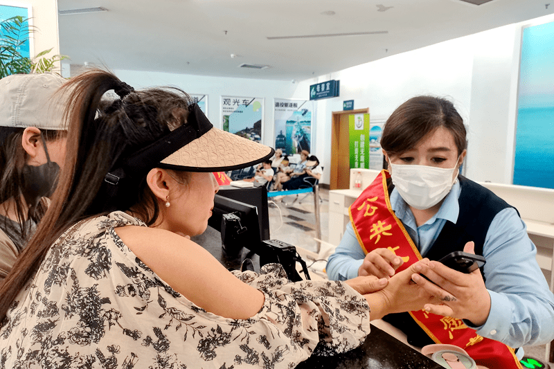 在服务站值班期间,邢炜杰眼观四路,随时为有需要的游客提供服务。看到背着大包小包行李的游客,邢炜杰赶快上前,帮游客把行李寄存到行李存放处,让游客能在岛上安心畅玩。对遇到困难的游客,她也能帮尽帮。此前,有一位东北来的旅客,因找不到线上购票信息犯了难,邢炜杰细心安慰游客,并帮着他一起回忆是在哪个平台上购的票,最后帮助游客找到了订单信息,游客顺利检票进岛。