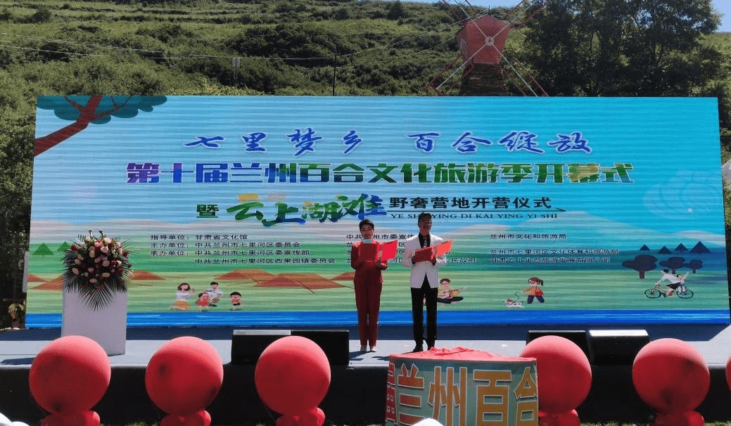 活动中,中共兰州市七里河区委常委、副区长王瑞致辞并宣布第十届兰州百合文化旅游季开幕。中共兰州市七里河区委书记芮文刚等为“云上湖滩”野奢营地揭牌,共迎乡村旅游发展美好时刻。
