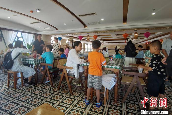 图为游客在东兴口岸附近的咖啡店。