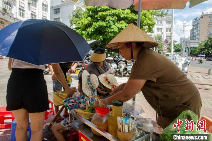 图为东兴口岸附近的一处小吃摊吸引游客。 翟李强 摄