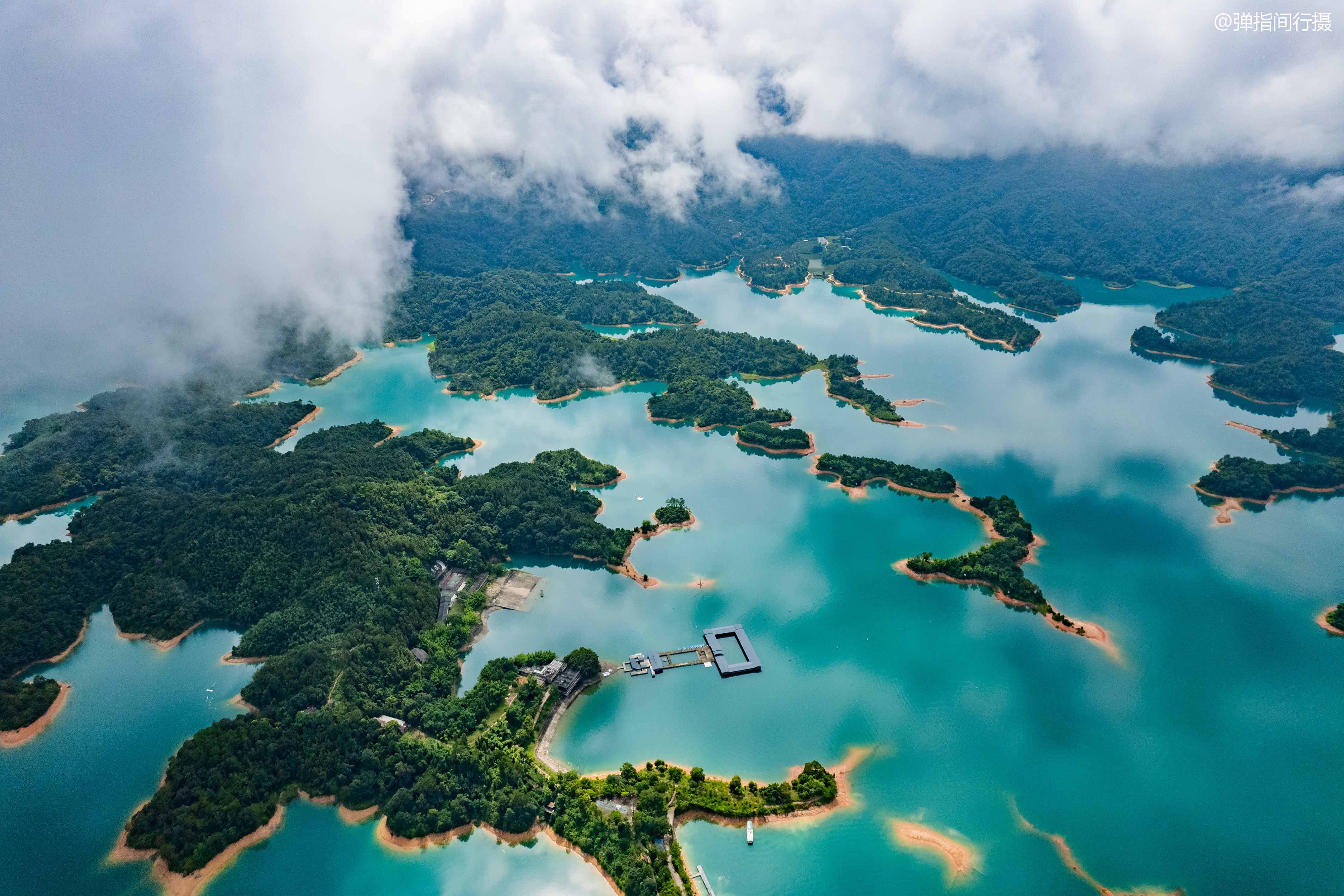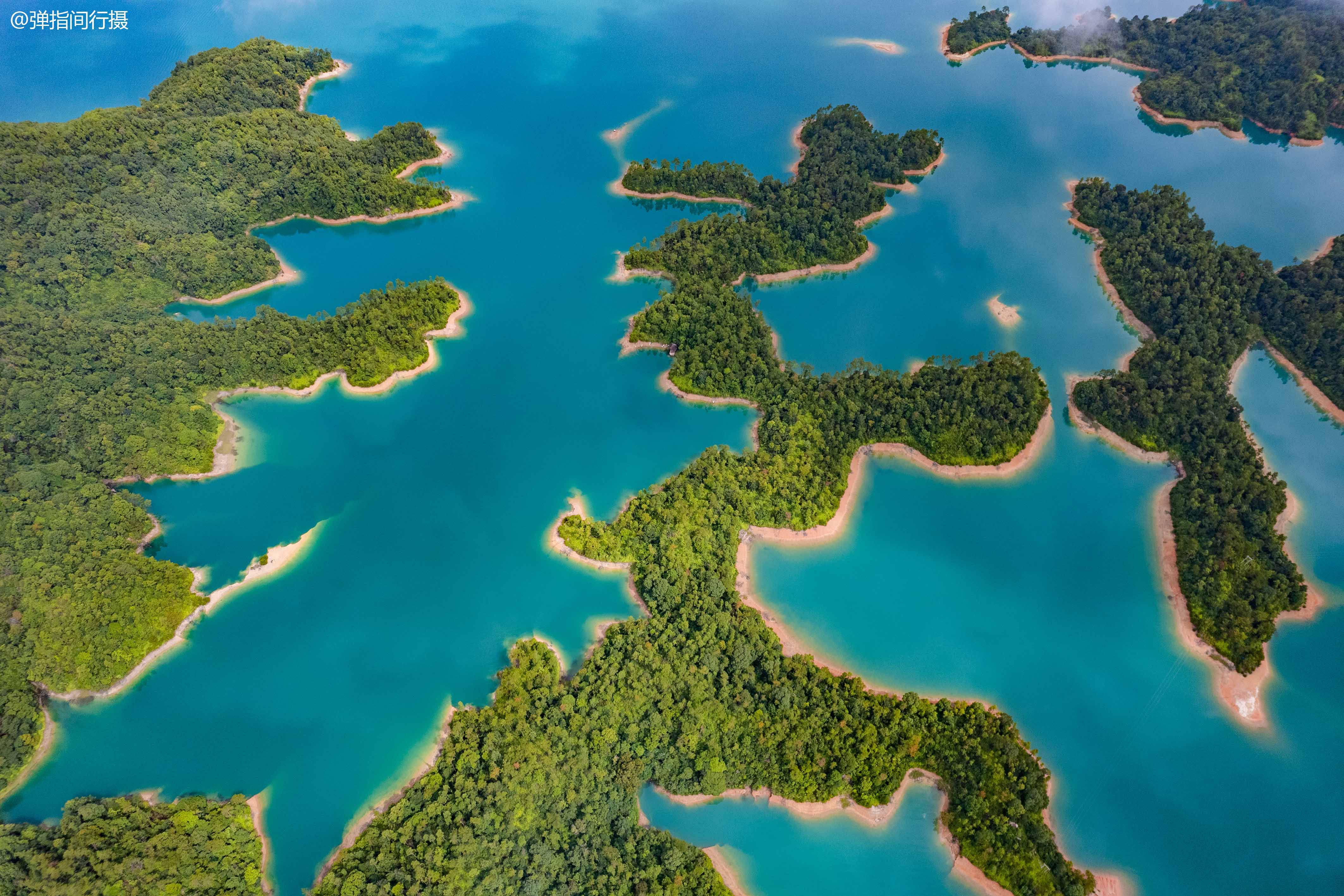 赶上现在的丰水期,使用无人机从高空俯瞰,一汪碧水,在蓝天、白云、朝霞夕阳的映衬下,展现出一幅迷人的画卷。各种形状的小岛镶嵌在湖面上,宛如一块块绿翡翠撒在蓝绿色的绸缎之上,风光美不胜收,宛如人间仙境。与“姐妹湖”浙江千岛湖相比,你觉得谁更胜一筹呢?