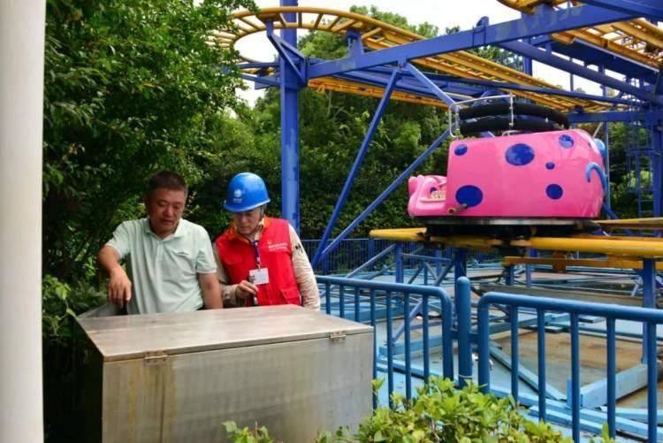“大热天,非常感谢你们特地过来检查用电设备,暑假里孩子很多,有你们保护游乐园的安全用电,我心里踏实不少!”欢乐谷电气负责人孙蔚对两名松江供电公司的党员志愿者说道。每年的暑假,欢乐谷和玛雅水上乐园是孩子们最喜欢的游乐场所之一。考虑到暑期游进入旺季,叠加高温影响,园区用电负荷将随之激增,松江供电公司便针对今年气温高、天气潮热和雨水多等实际情况,专门开展了对重点游乐场所的安全用电排查治理。