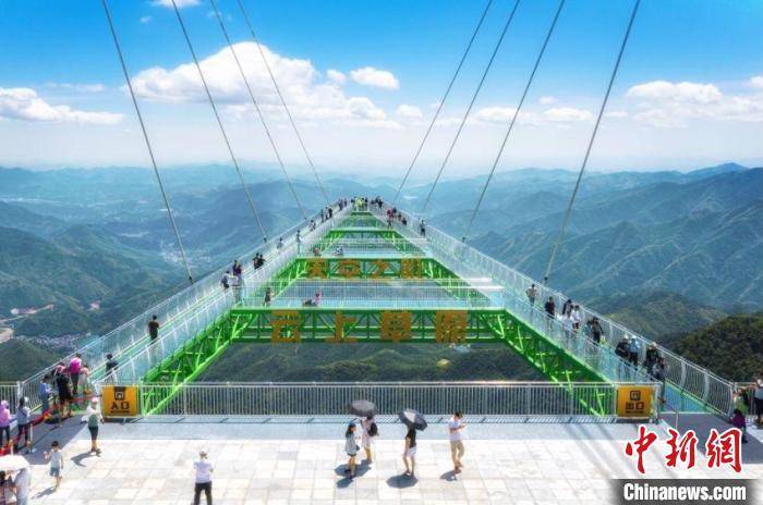 游客在湖州安吉天子湖荣耀天空之城里戏水游玩 王翠供图