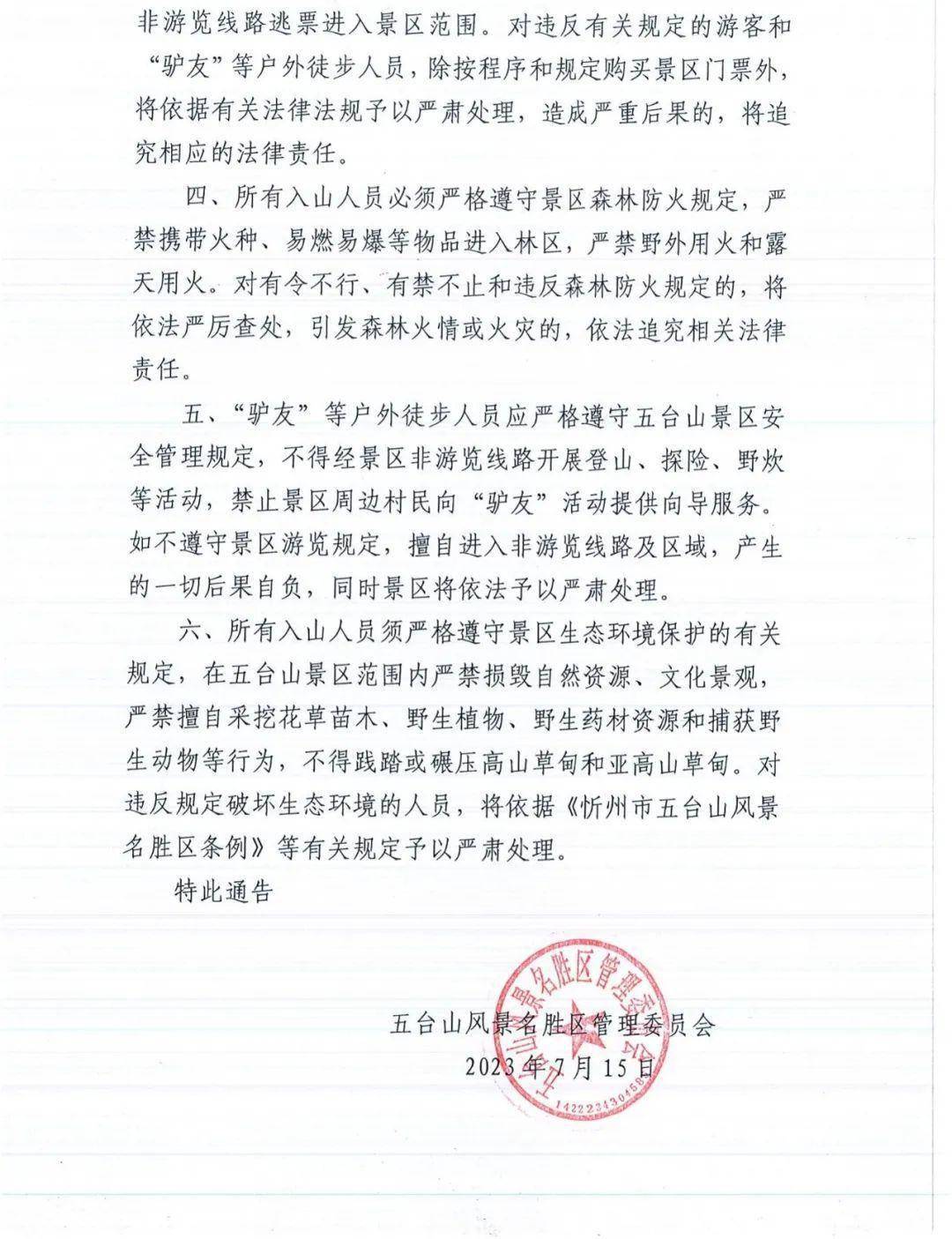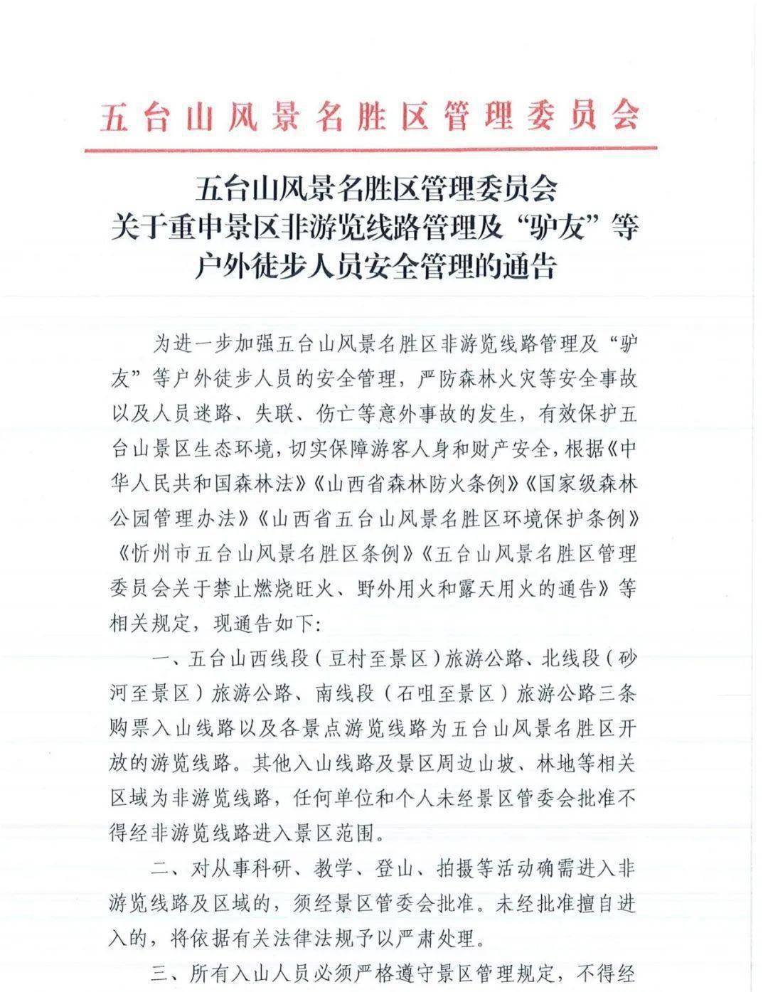 原标题:关于重申景区非游览线路管理及“驴友”等户外徒步人员安全管理的通告
