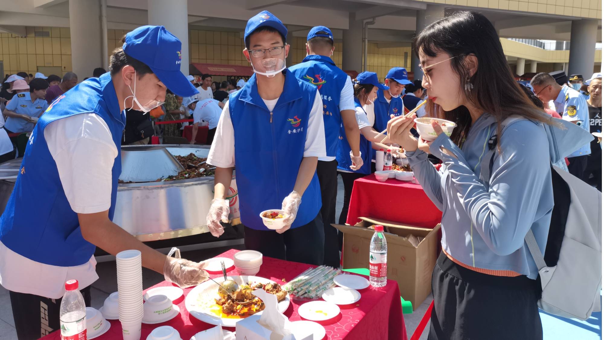 游客品尝沙湾美食 (马艳琳 摄)