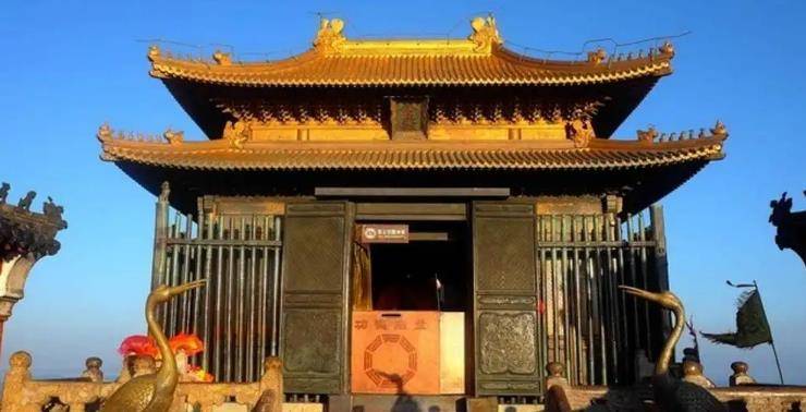 大岳太和宫中有座铜铸鎏金的建筑,它就是在《中国之最》里被誉为“古今天下第一殿”的武当山金殿,武当山金顶也因这座金殿而得名,金殿建于明永乐十四年,总重为90余吨,共用去360余公斤的黄金,平均每勺铜里要加入7.44两黄金。