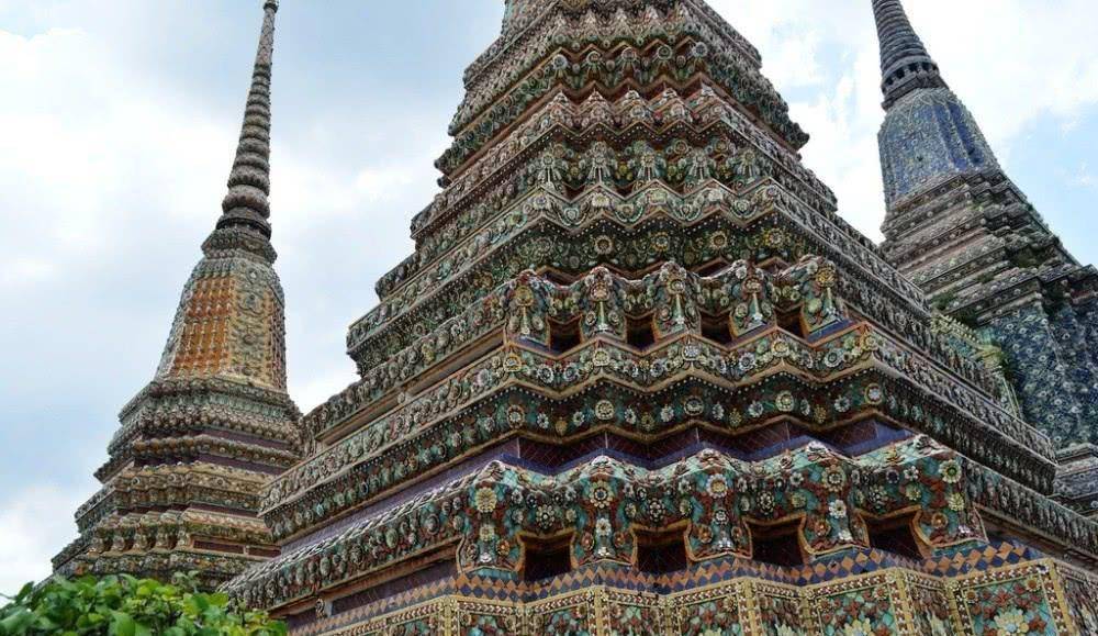 这个佛像主要是用砖石砌成之后,再用金箔漆贴,并且还要在这么巨大的身体之上雕刻一个个精美的图案,可想而知,当时的工程是多么的浩大。要知道,在泰国佛像十分受尊敬的,入寺要穿着要整齐,男士不得穿短裤和无袖衫,女士不得穿无袖衫和迷你裙,要穿正式的长裤或长裙,不得穿拖鞋。 并且不可以大声喧哗,不得攀爬任何建筑物。每天来看大佛的游客络绎不绝。卧佛寺除了卧佛之外,还有很多佛塔,林立的佛塔,镶满彩瓷,极具泰国本土特色,吸引了一批又一批的游客前往参观。