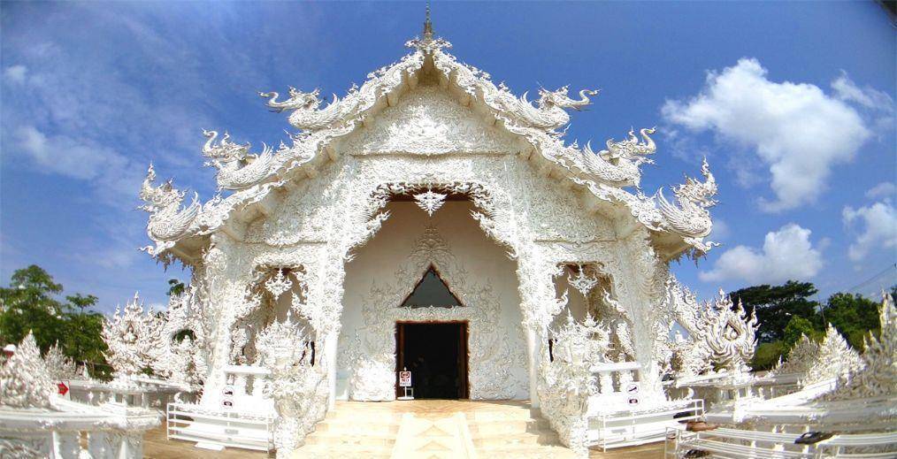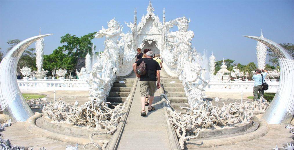 它就是白庙,白庙位于国外清莱,始建于1998年,和其它历史悠久的寺庙比起来,它似乎还是非常的“年轻”的,是由国外著名华裔建筑设计师许龙才所建造的,虽然只有短短的十几年的时间,如今却成为了清莱的知名景点。