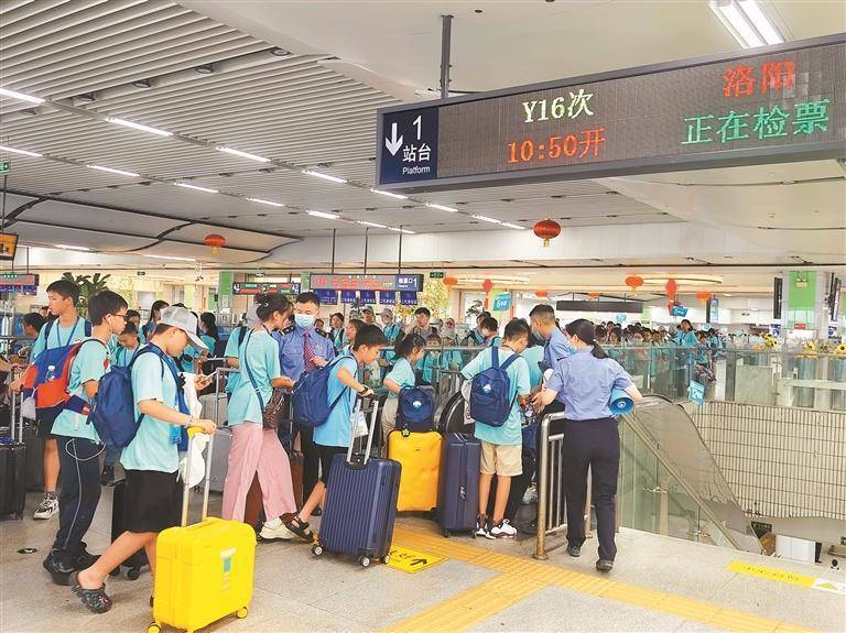深圳晚报讯 (记者 邱志东 袁晔 通讯员 郭成海 田恬) 7月15日10时,深圳火车站一站台人声鼎沸、熙熙攘攘,来自深圳、香港、澳门、台湾等地的各大中小学的700多名学生整齐列队,准备登乘Y16次专列,他们即将开启为期12天的“龙腾中华”主题文化交流研学之旅。