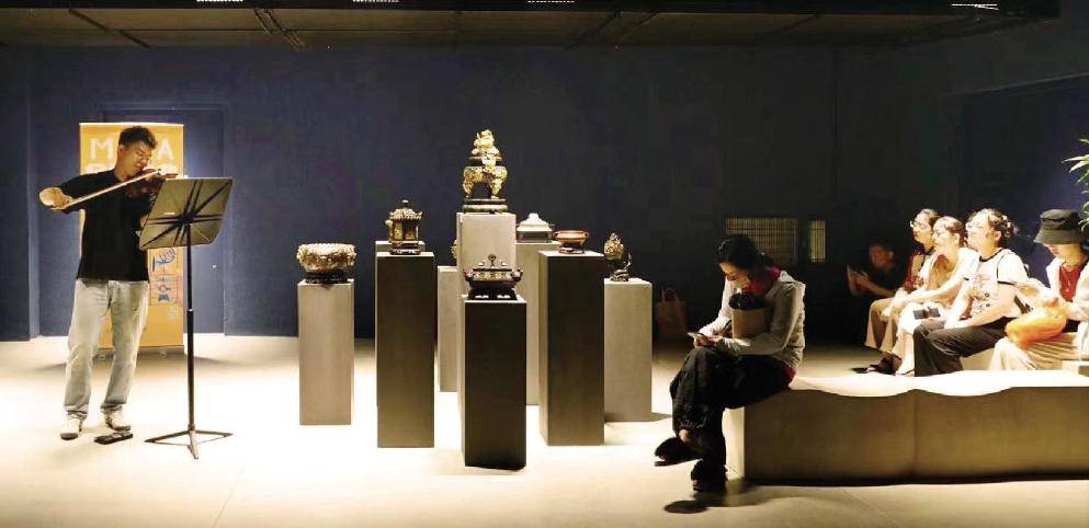 记者昨天下午走进龙华塔影空间时,恰逢“香如故——塔影香事雅集”举行。几位年轻乐手奏响动听的音符,而空间中的数十位市民游客,或是驻足赏乐或是拍照打卡,感受古典音乐与中国香文化的诗意融汇,体会不同艺术门类跨界碰撞的意趣。
